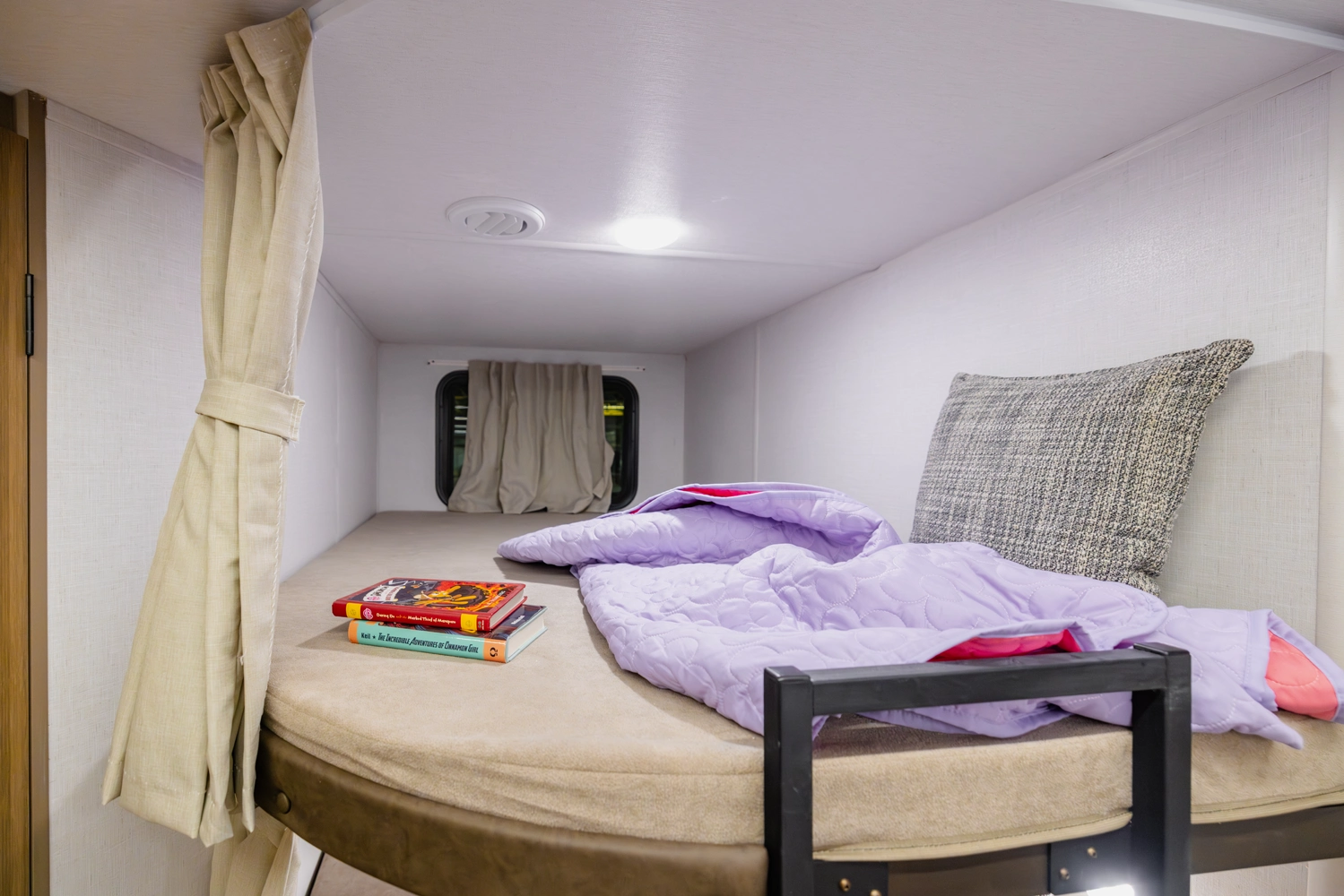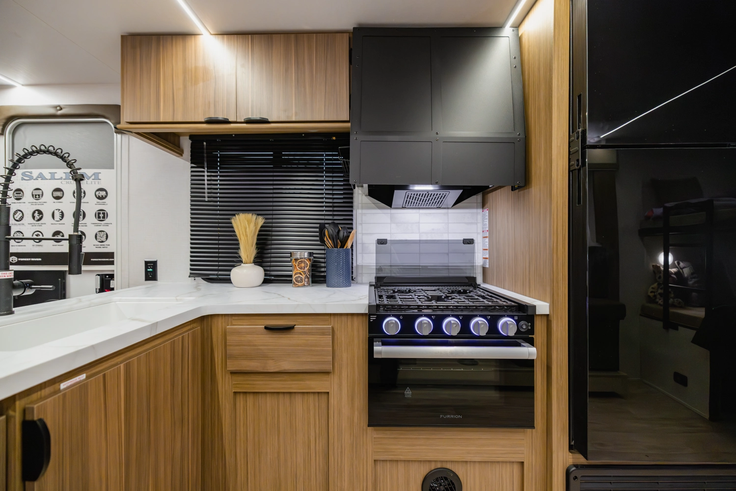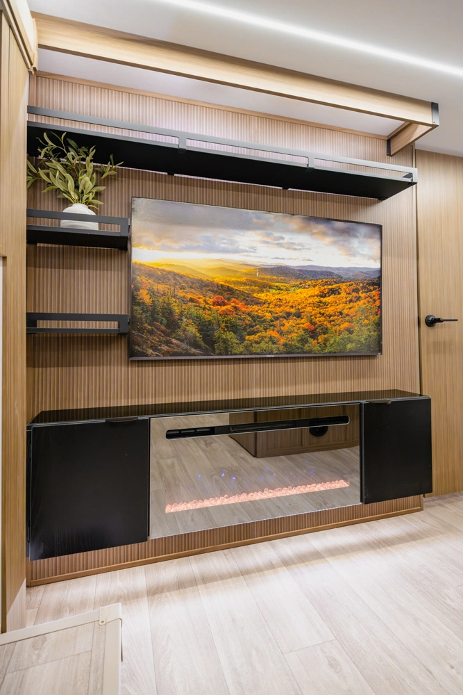 Equipamiento: Aire acondicionado, calefacción, agua caliente, refrigerador y freezer 12V, cocina y horno a gas, lavaplatos, amplio baño con ducha, lavamanos, wc y puerta al exterior, dos amplias literas, sofá cama, comedor cama y pieza matrimonial privada, chimenea eléctrica, Smart TV 40″, equipo de música JBL, Slide out (ampliación lateral), toldo retráctil eléctrico, gatas estabilizadoras, dos paneles solares 200W, dos baterías de gel 100Ah, transformador de corriente, conexión a red de agua, electricidad y alcantarillado.