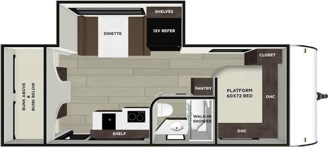 Casa rodante americana 24 pies (7,3 metros), 1.800 kilos y capacidad de alojamiento de hasta 6 personas.