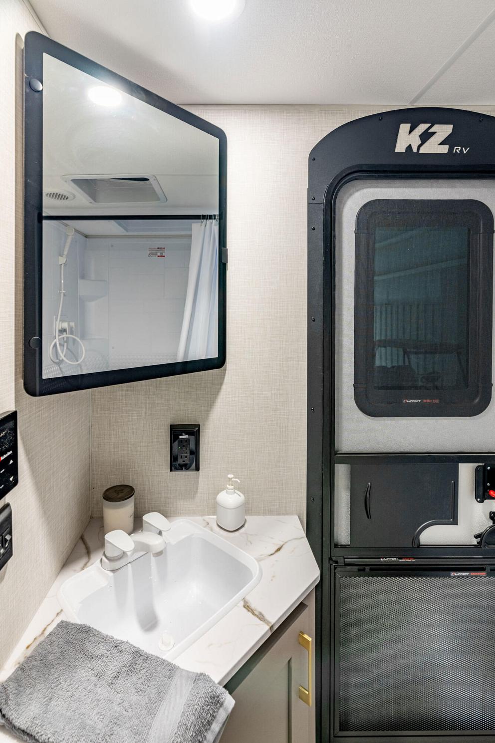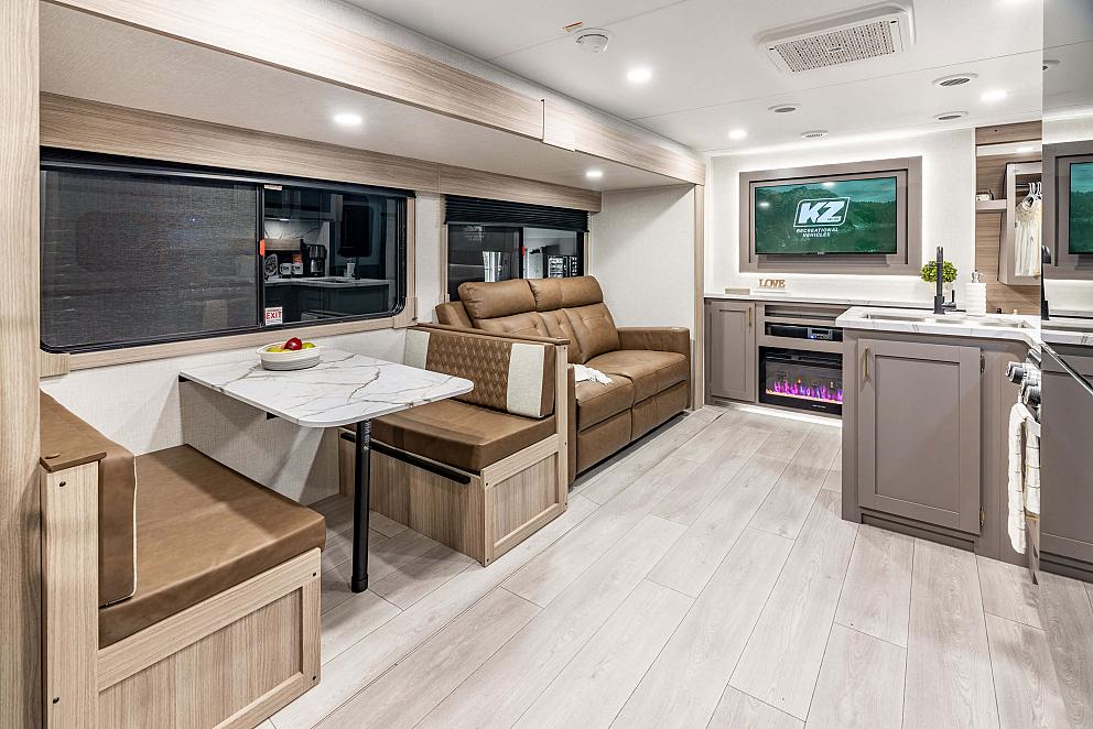Equipamiento: Aire acondicionado, calefacción, agua caliente, refrigerador y freezer 12V, cocina y horno a gas, microondas, amplio baño con ducha, lavamanos y wc, pieza matrimonial privada, sofá cama, comedor cama, dos literas de plaza y media, slide out (ampliación lateral), toldo retráctil eléctrico, cocina exterior, parlantes interiores y exteriores, gatas estabilizadoras, dos paneles solares de 200W, dos baterías de ciclo profundo 100Ah, transformador de corriente.