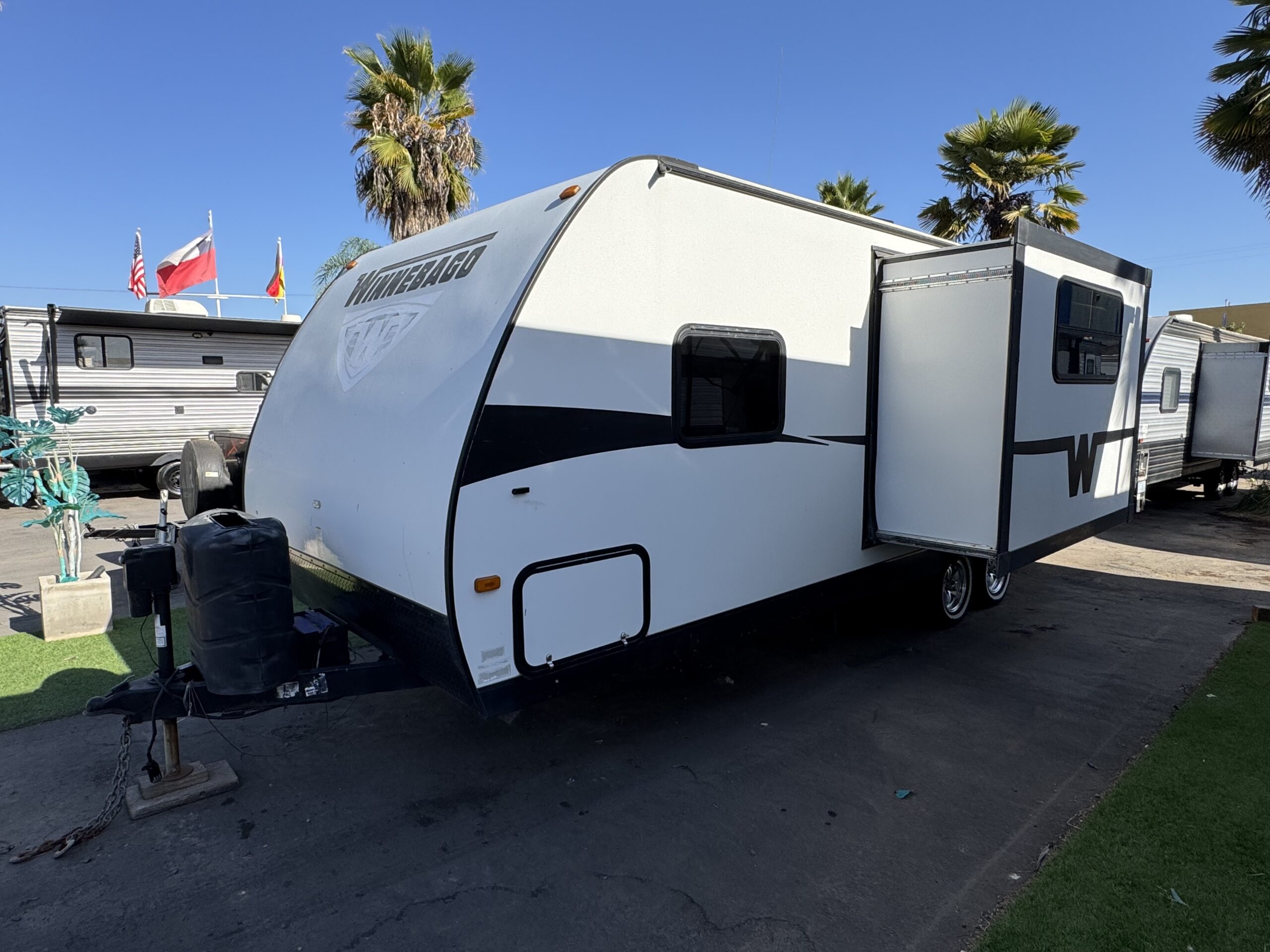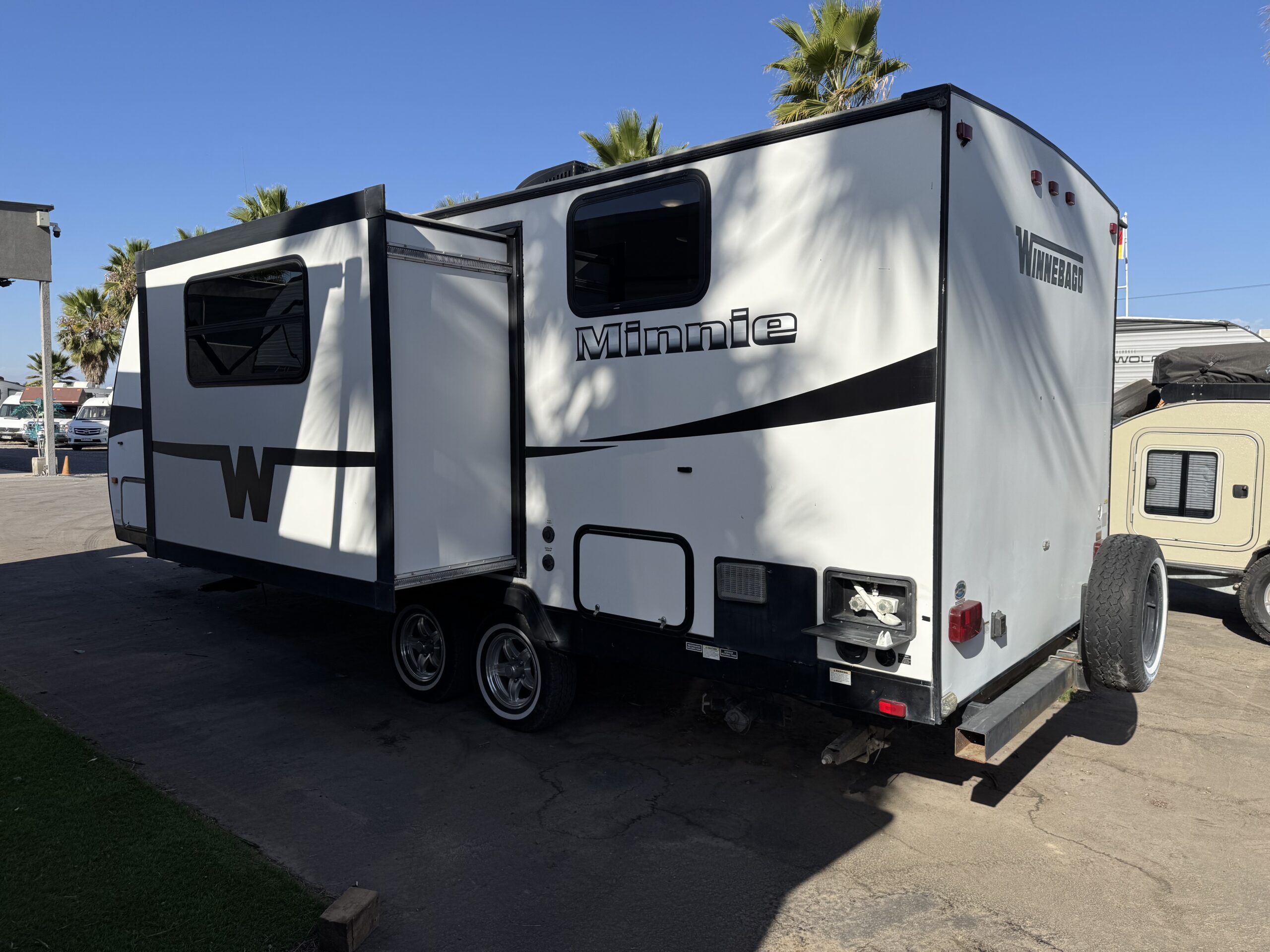 Equipamiento: Aire acondicionado, calefacción, agua caliente, refrigerador y freezer bivalente, cocina y horno a gas, microondas, Slide out (ampliación lateral), amplio baño con ducha, lavamanos y wc, pieza matrimonial privada, amplios closet, toldo eléctrico, ducha exterior, parlantes exteriores, dos paneles solares, dos baterías nuevas, transformador de corriente.