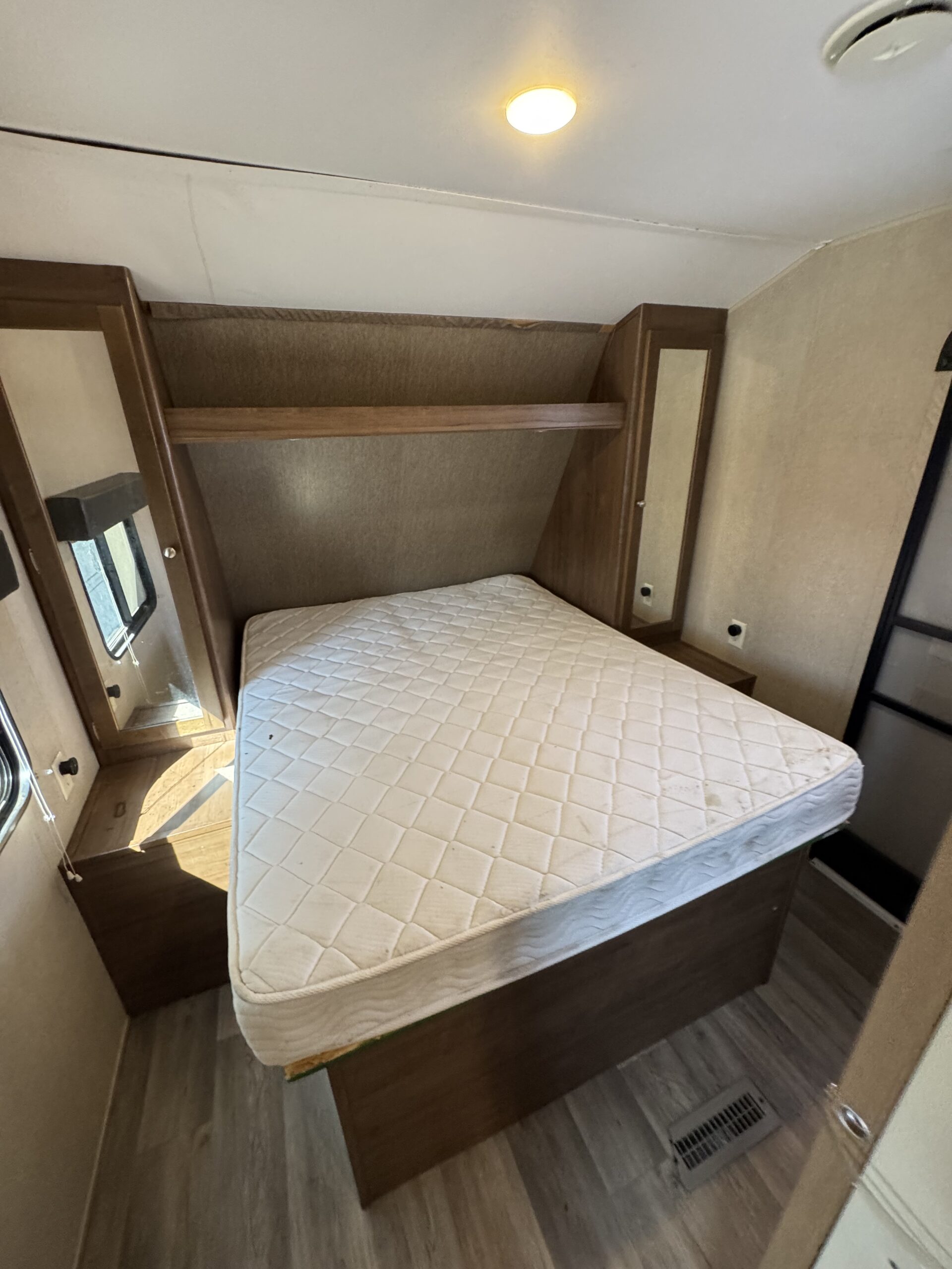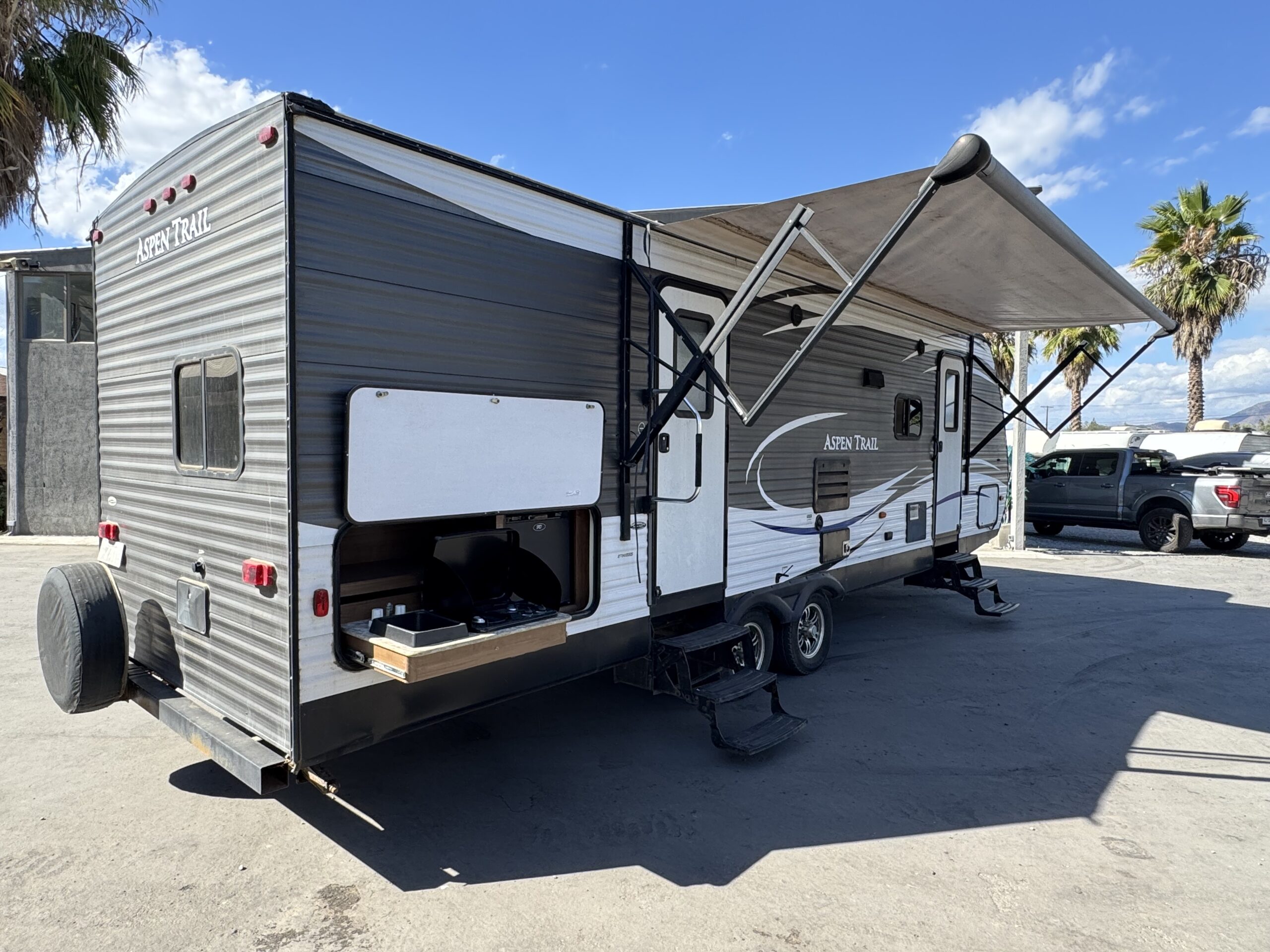 Equipamiento: Aire acondicionado, calefacción, agua caliente, refrigerador y freezer bivalente (220v o gas), cocina y horno a gas, microondas, amplio baño con ducha, lavamanos y wc, sofá cama, comedor se convierte en cama, dos amplias literas, pieza matrimonial privada, toldo eléctrico, slide out (ampliación lateral), cocina exterior, panel solar 200W, batería de gel nueva, transformador de corriente, conexión a la red de agua, electricidad y alcantarillado.
