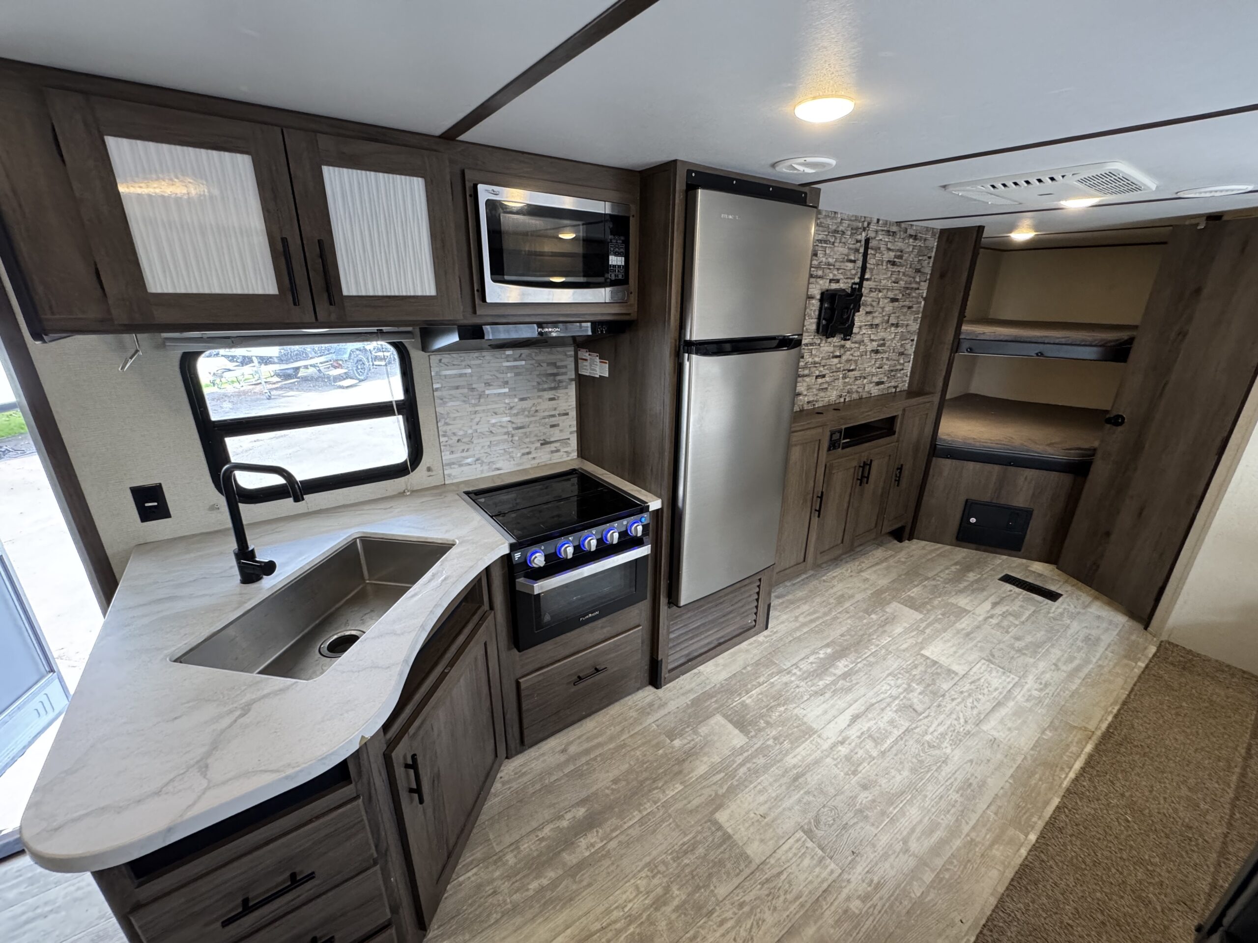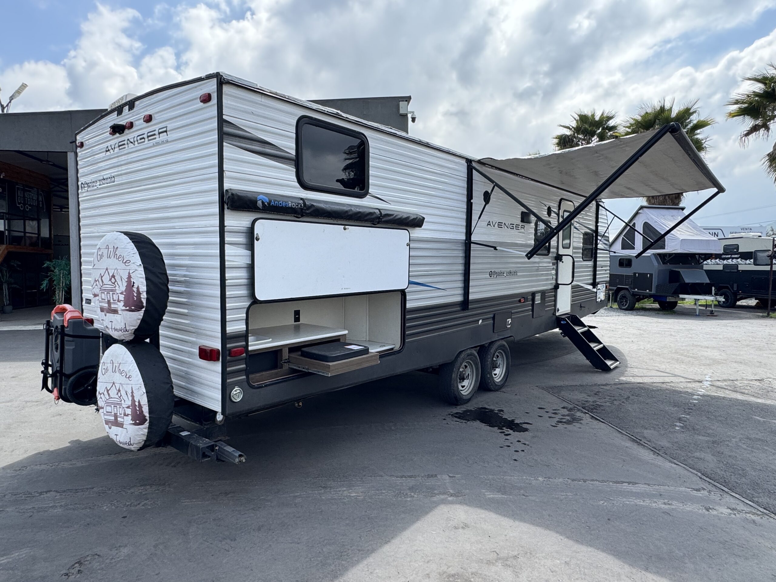Equipamiento: Aire acondicionado, calefacción, agua caliente, cocina y horno a gas, refrigerador y freezer bivalente (eléctrico o gas), microondas, baño con ducha, lavamanos y wc, sofá cama, comedor cama, dos literas amplias, pieza matrimonial privada, slide out (ampliación lateral), cocina exterior, toldo eléctrico, transformador de corriente, equipo solar compuesto de 3 paneles solares de 200W, dos baterías de 200AH e inversor de corriente.
