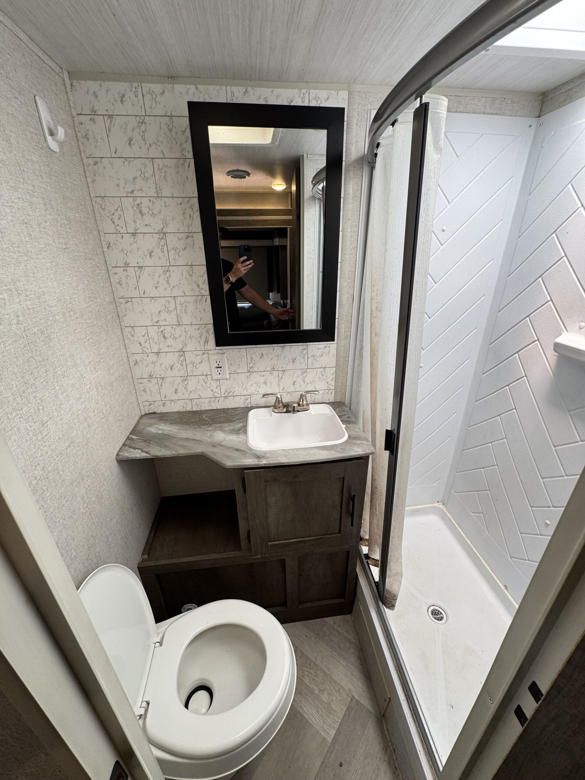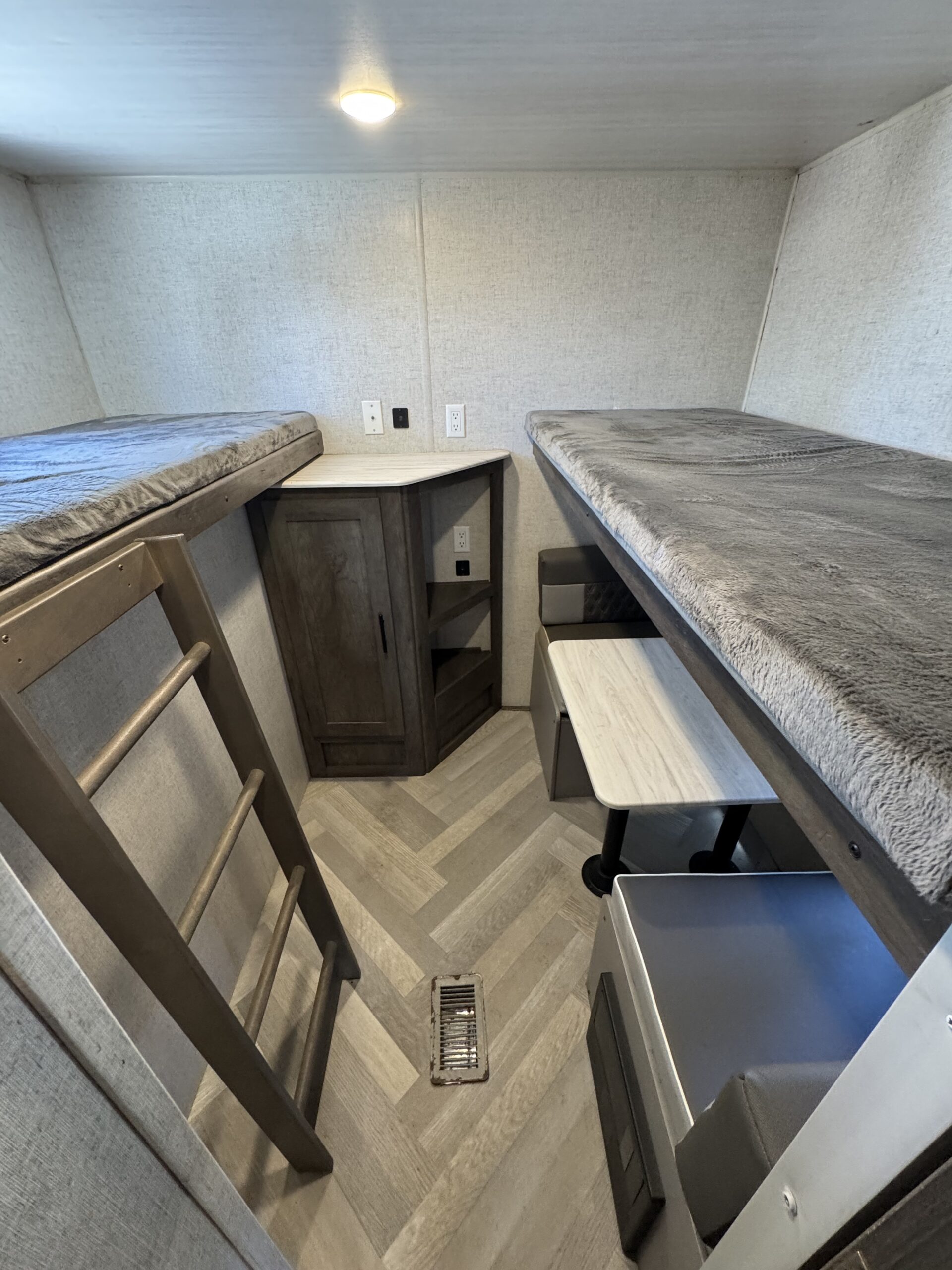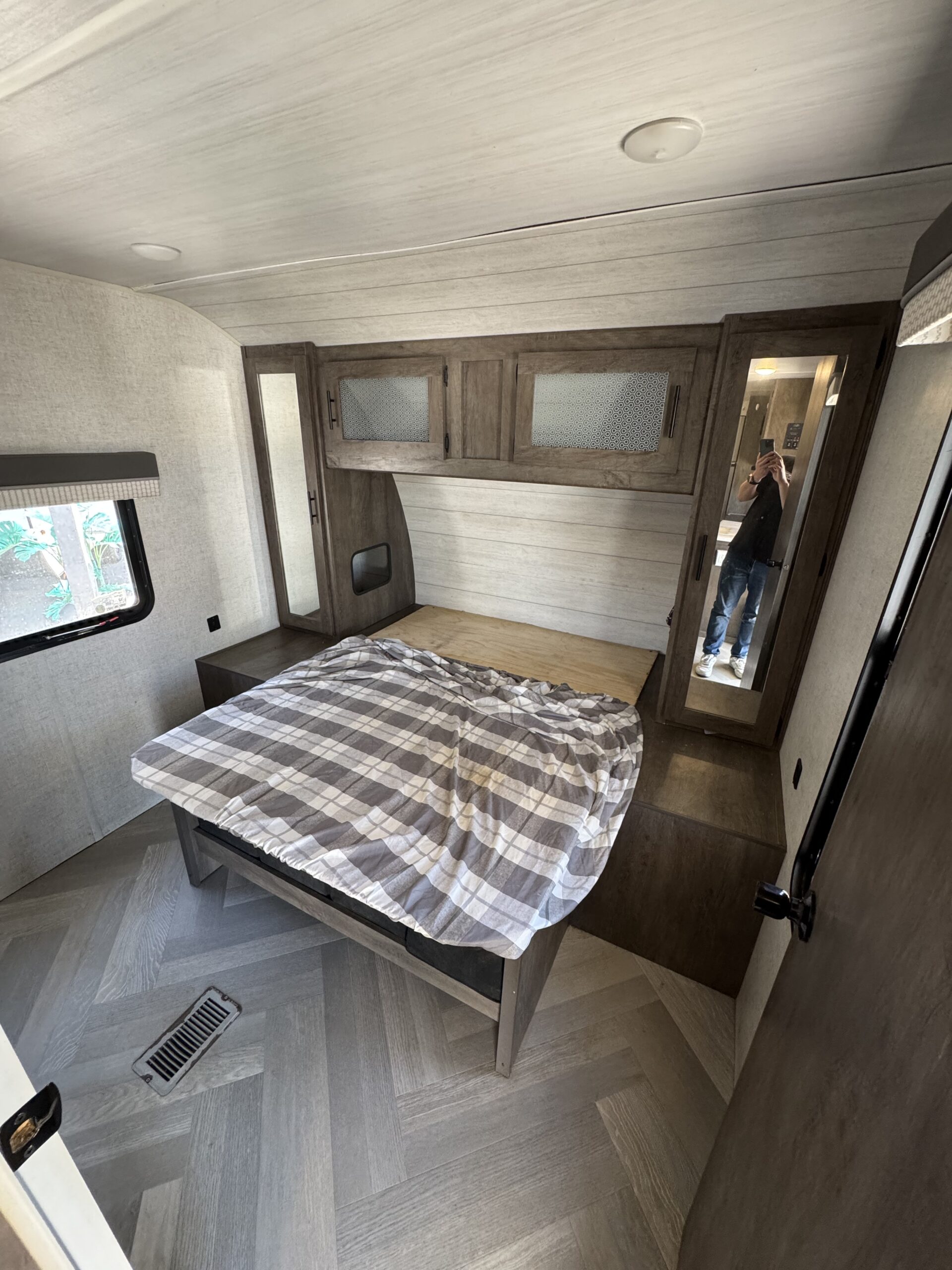 Equipamiento: Aire acondicionado, calefacción, agua caliente, cocina y horno a gas, microondas, refrigerador y freezer 12V, amplio baño con ducha, lavamanos y wc, dos habitaciones independientes, chimenea eléctrica, Slide out (ampliación lateral), parrilla exterior con frigobar, gatas estabilizadoras eléctricas, toldo retráctil eléctrico, Panel solar, batería de gel 100AH, transformador de corriente.