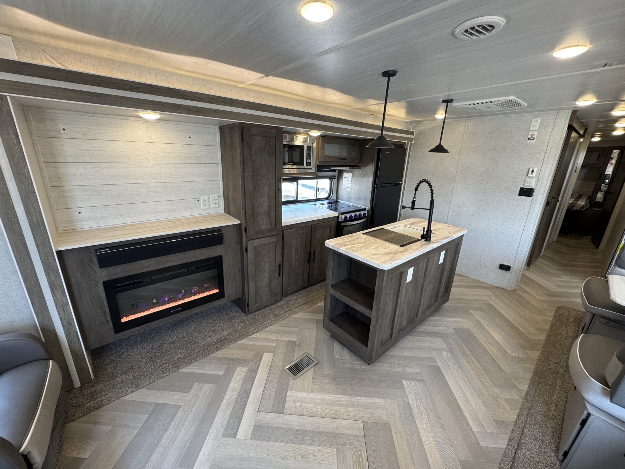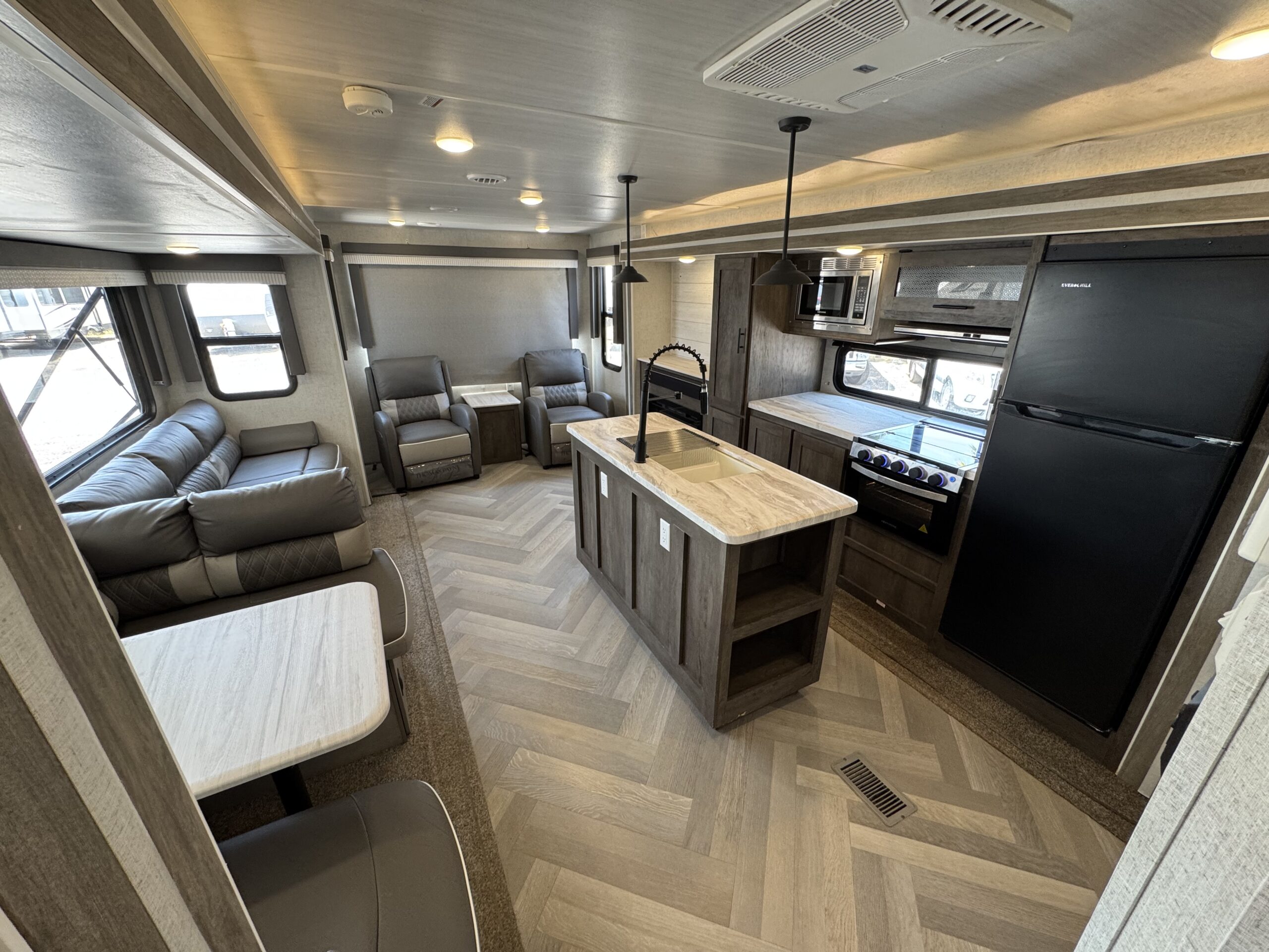 Destaca su enorme zona común (cocina, comedor, living) gracias a sus dos Slide out (ampliaciones laterales), además de amplias ventanas para vistas panorámicas e iluminación natural.
