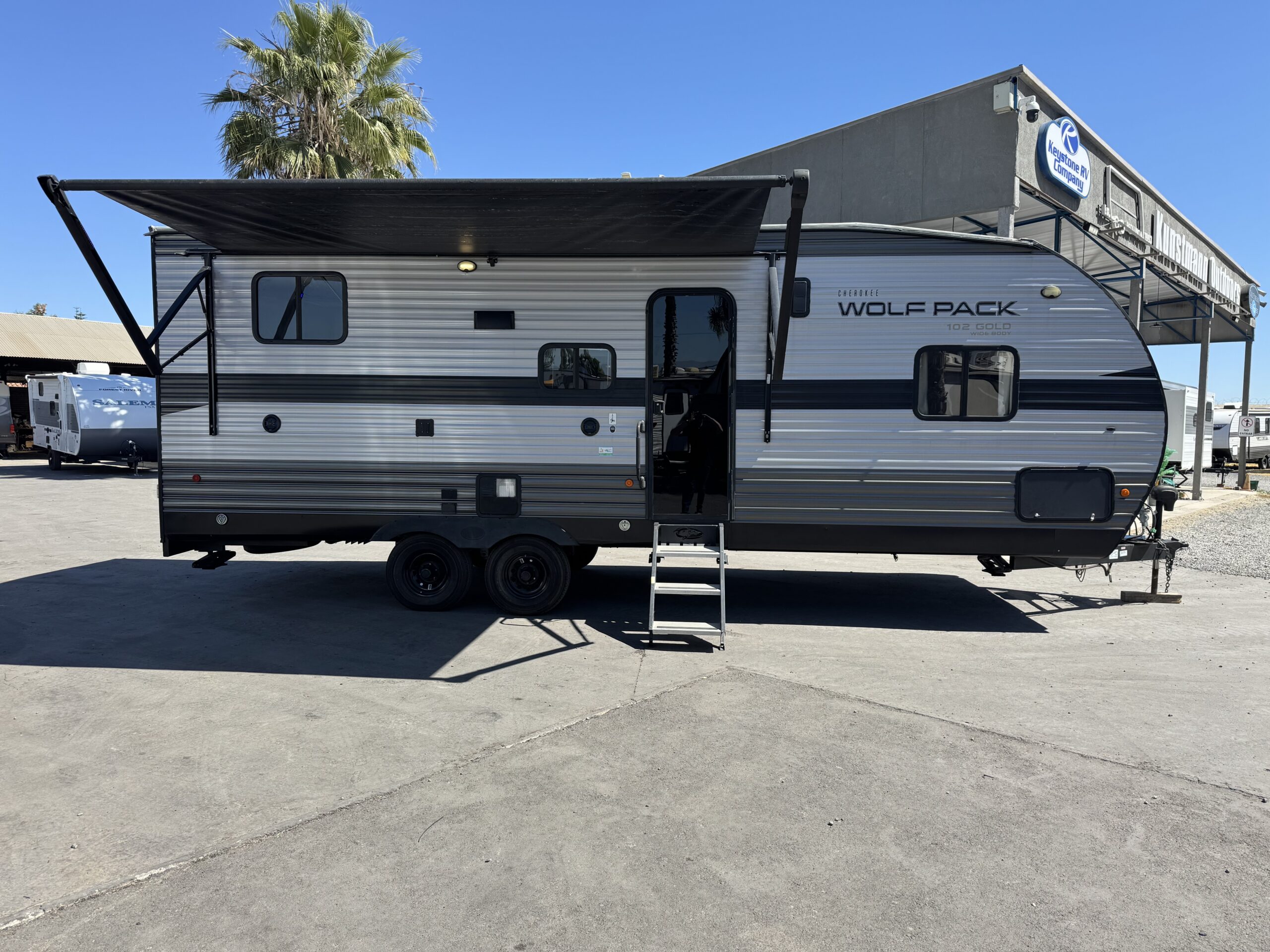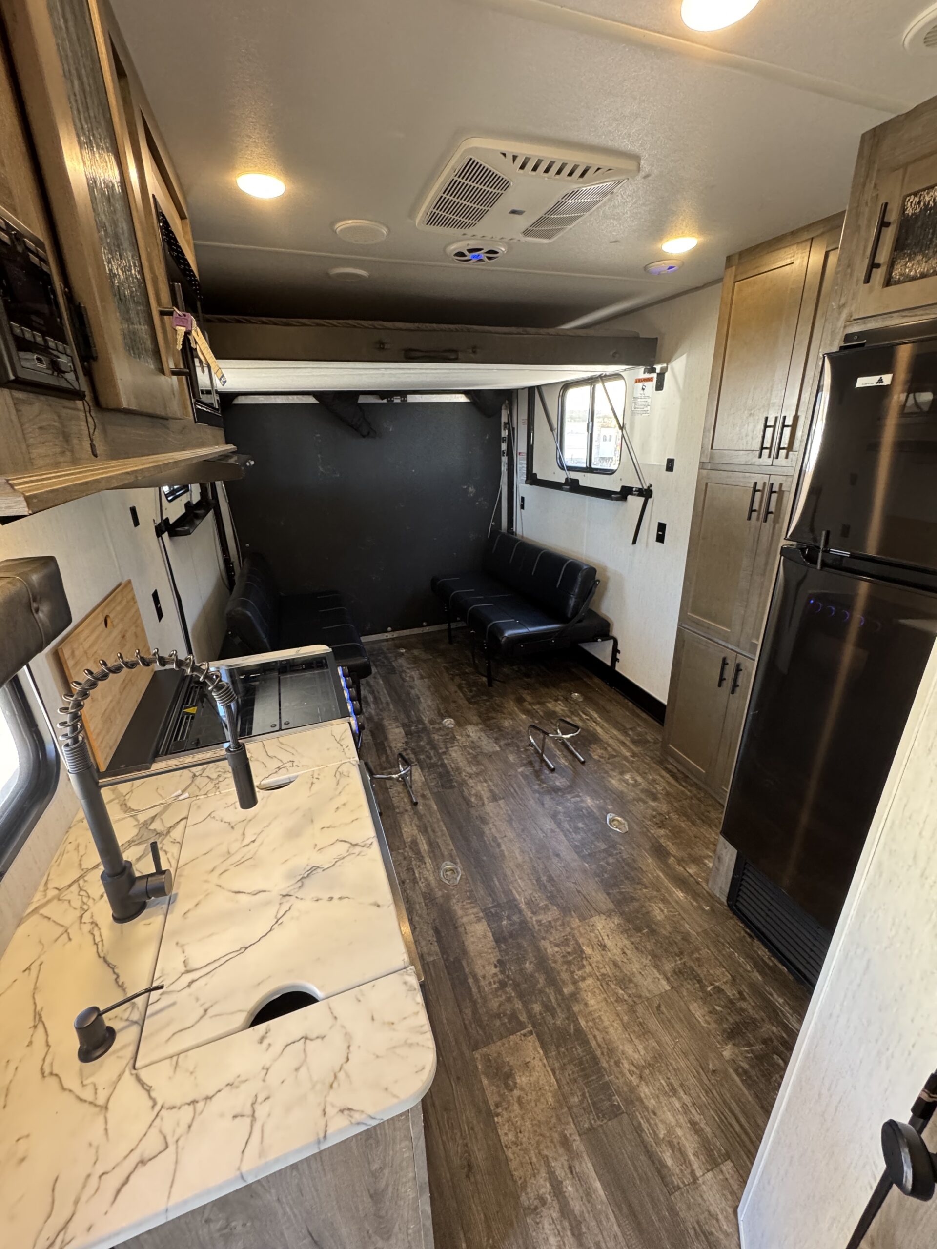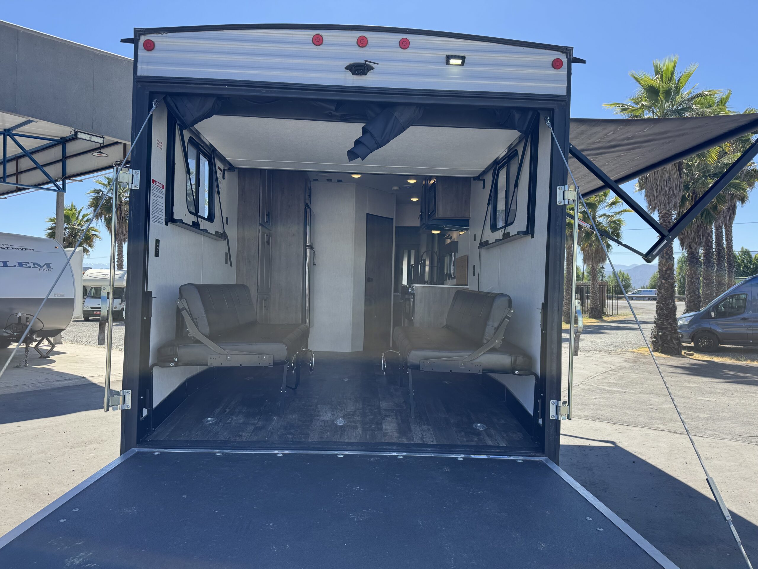 Casa rodante americana Toy Hauler, 30 pies (9 metros), 2,800 kilos, capacidad de carga 22.00 kilos y capacidad de alojamiento de hasta 6 personas.