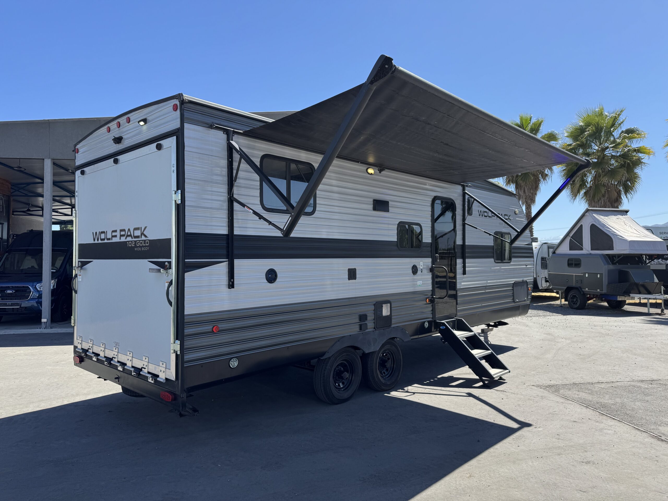 Equipamiento: Aire acondicionado, calefacción, agua caliente, refrigerador y freezer, 12V, cocina y horno a gas, microondas, lavaplatos, amplio baño con ducha, lavamanos y wc, pieza matrimonial privada, comedor se convierte en cama para dos personas y otra cama doble basculante que baja electrónicamente, toldo retráctil eléctrico, ducha exterior, panel solar 200W, batería de gel 100AH, transformador de corriente.