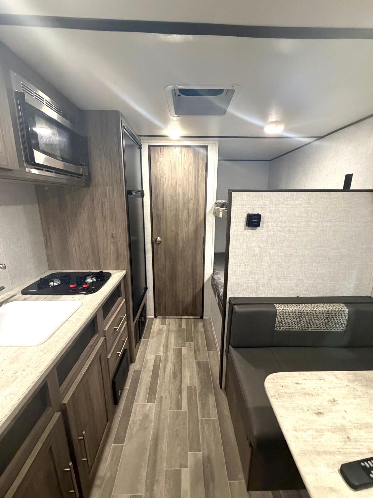 Equipamiento: Aire acondicionado, calefacción, agua caliente, refrigerador y freezer bivalente (eléctrico o gas), cocina a gas, microondas, lavaplatos, dos literas individuales, comedor cama, baño con ducha, toldo eléctrico, gatas estabilizadoras, conexión a la red eléctrica, agua y alcantarillado, panel solar 200W, batería de gel 100AH, transformador de corriente.