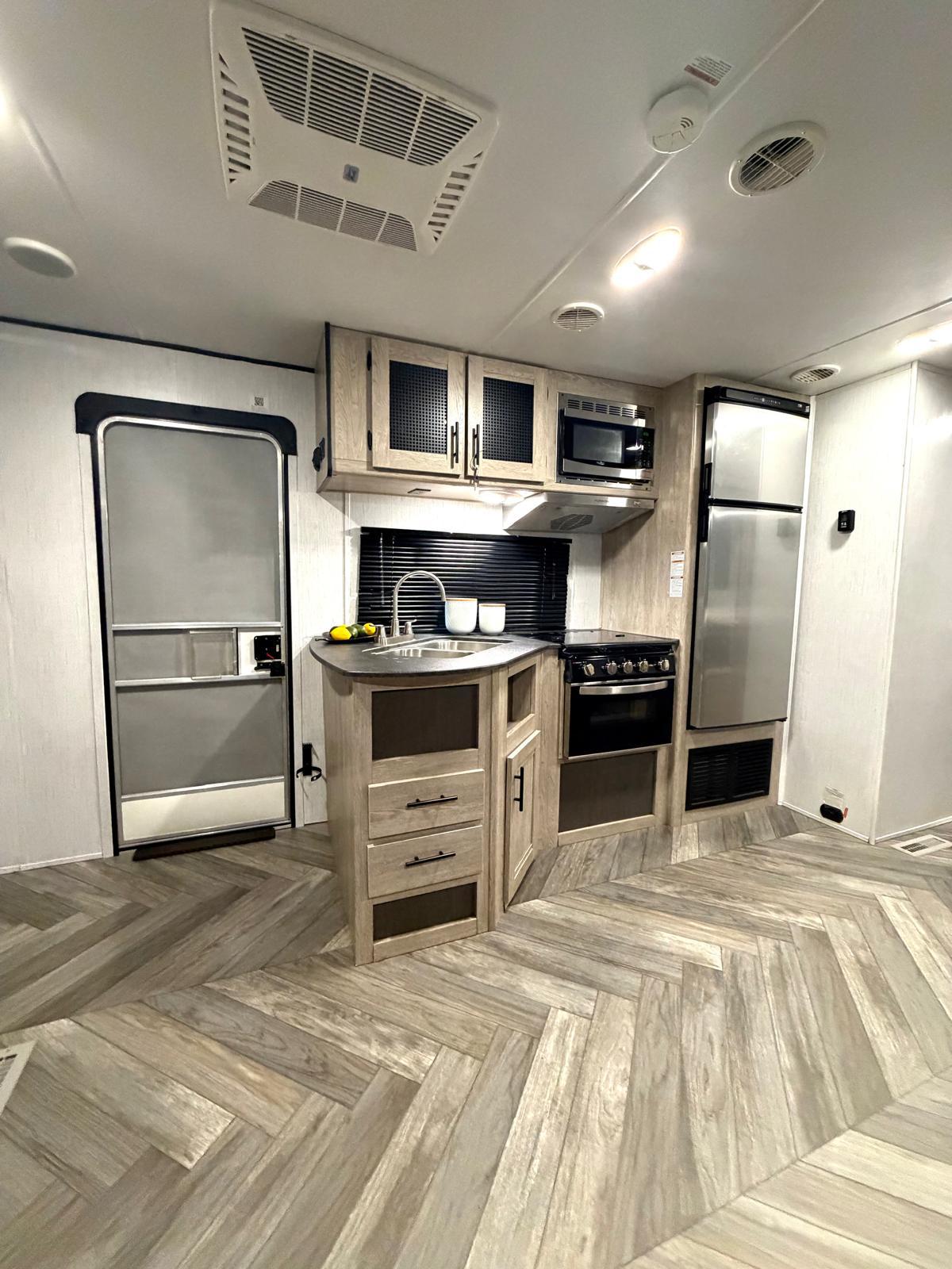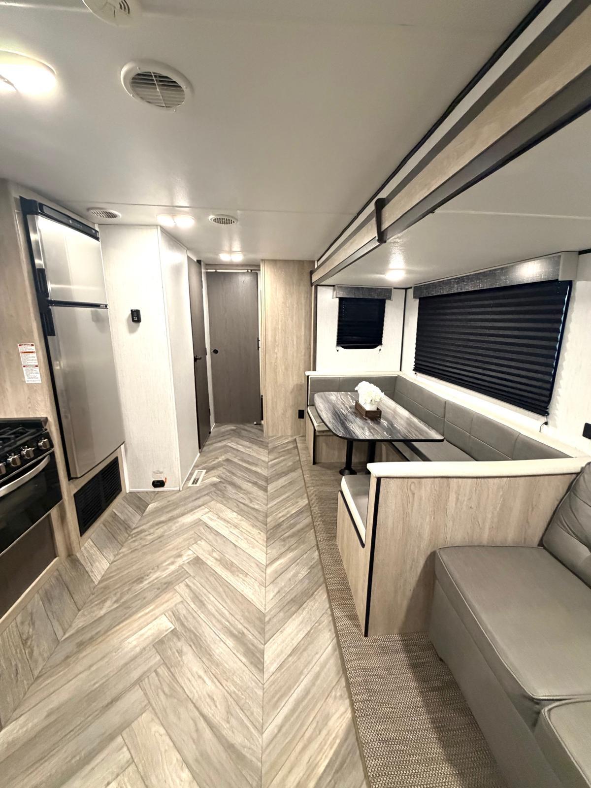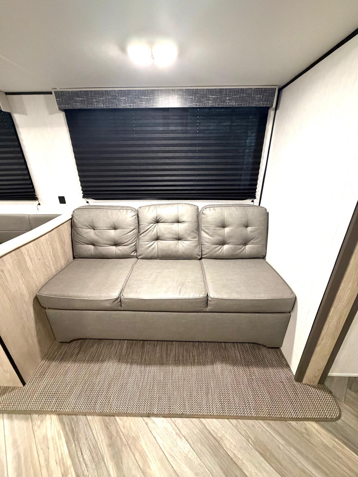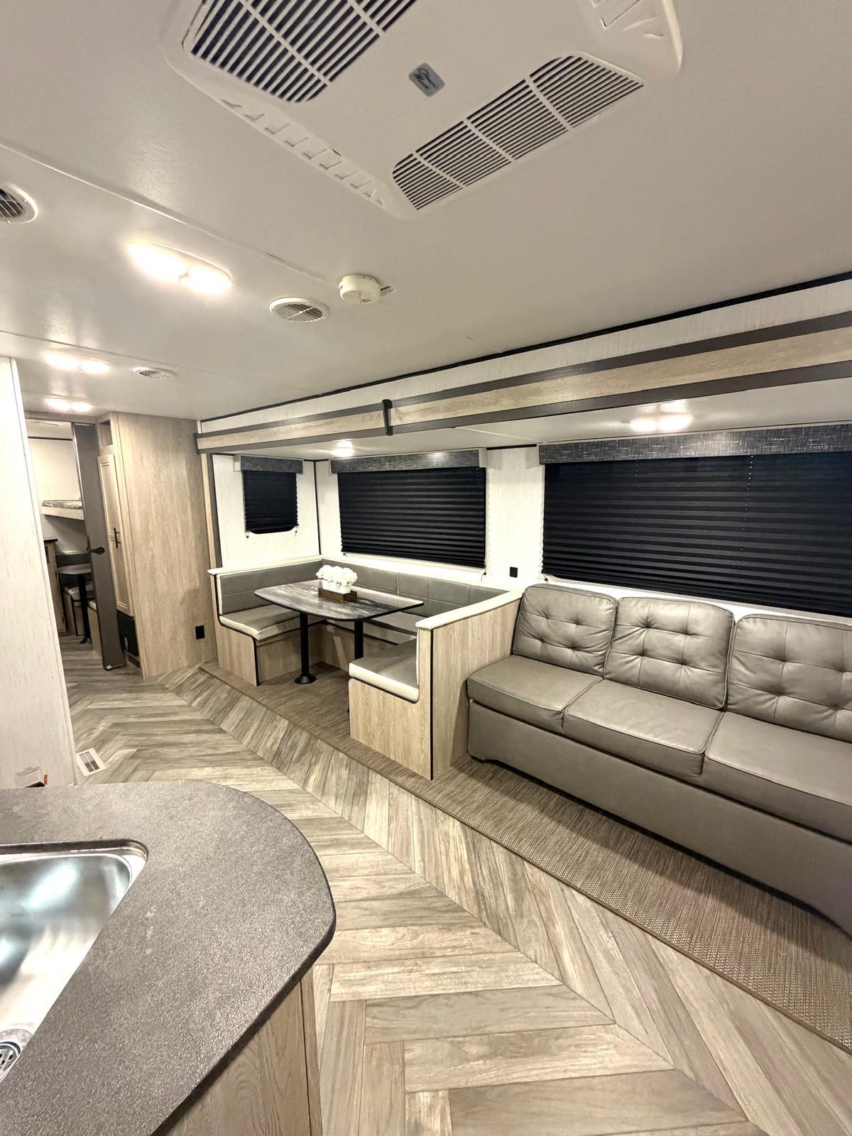 Equipamiento: Aire acondicionado, calefacción, agua caliente, refrigerador y freezer 12V, cocina y hornoa gas, microondas, lavaplatos, dos piezas independientes, comedor cama, baño con ducha, lavamanos y wc, Slide out (ampliación lateral), toldo eléctrico, gatas estabilizadoras, conexión a la red eléctrica, agua y alcantarillado, 2 paneles solares 200W, 2 baterías de gel 100AH, transformador de corriente.