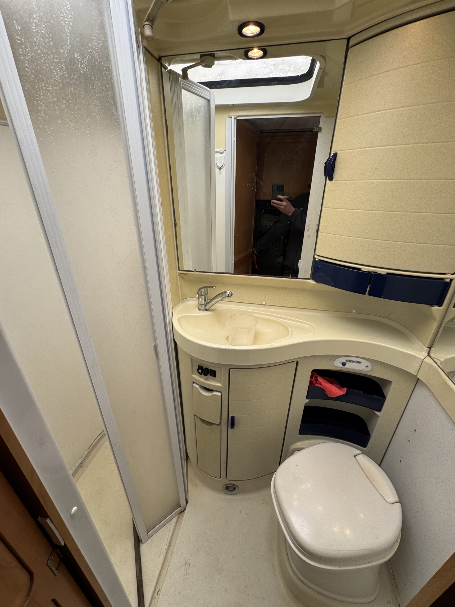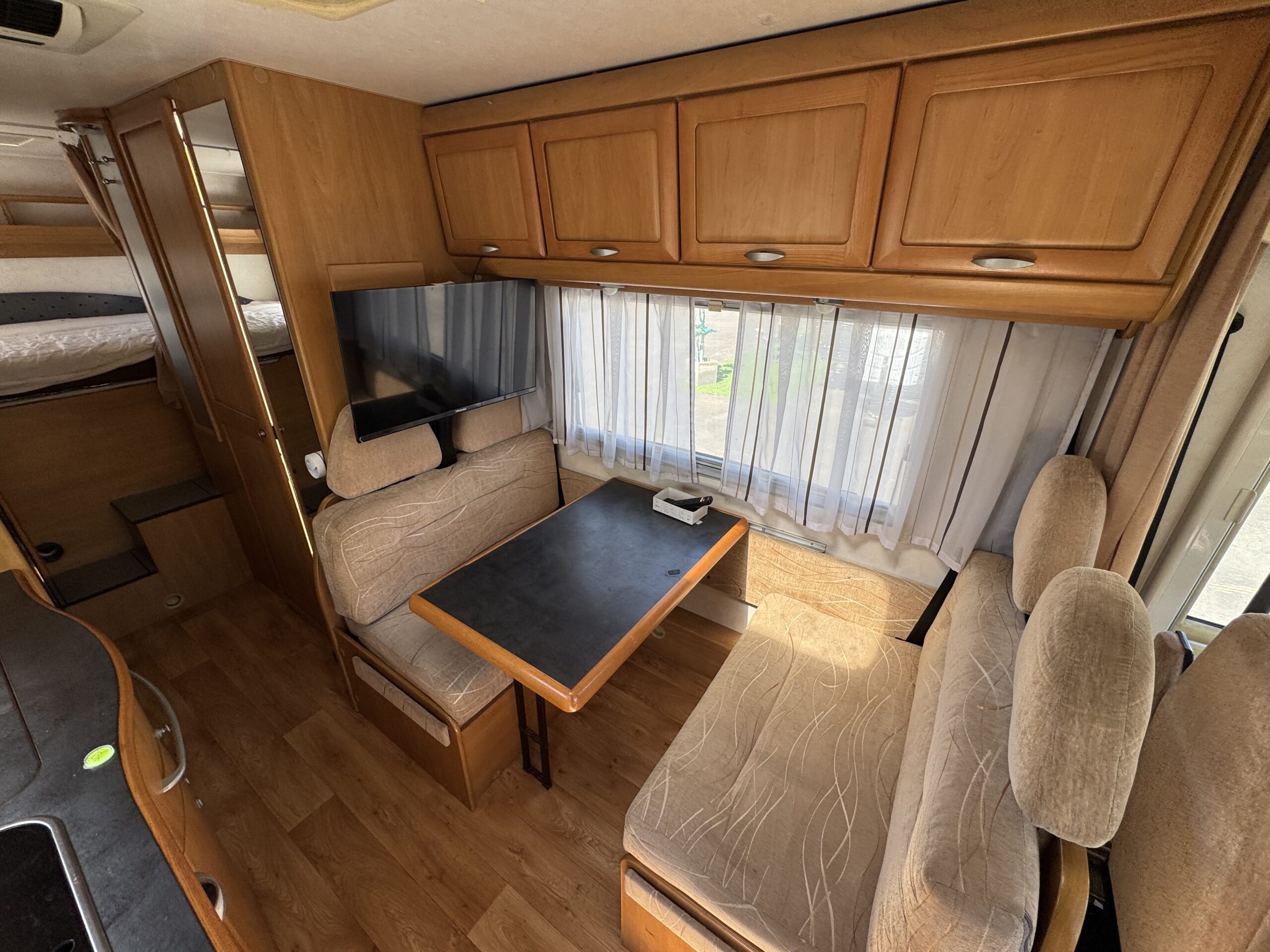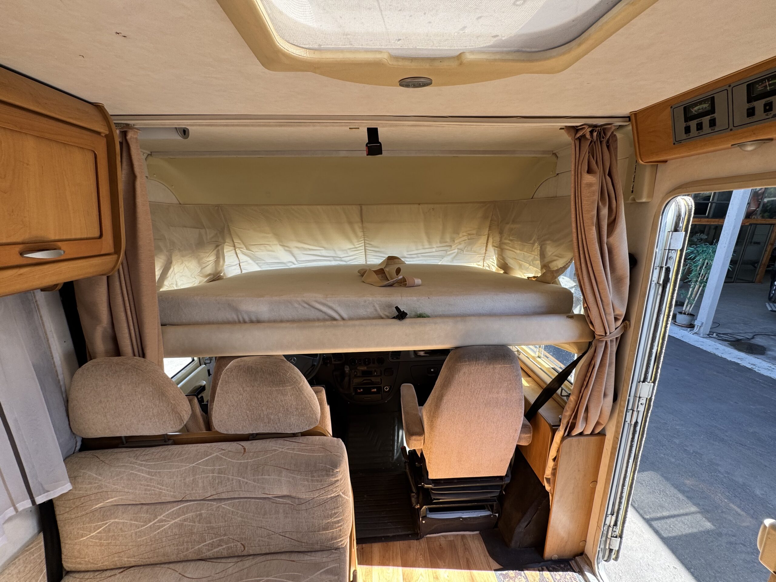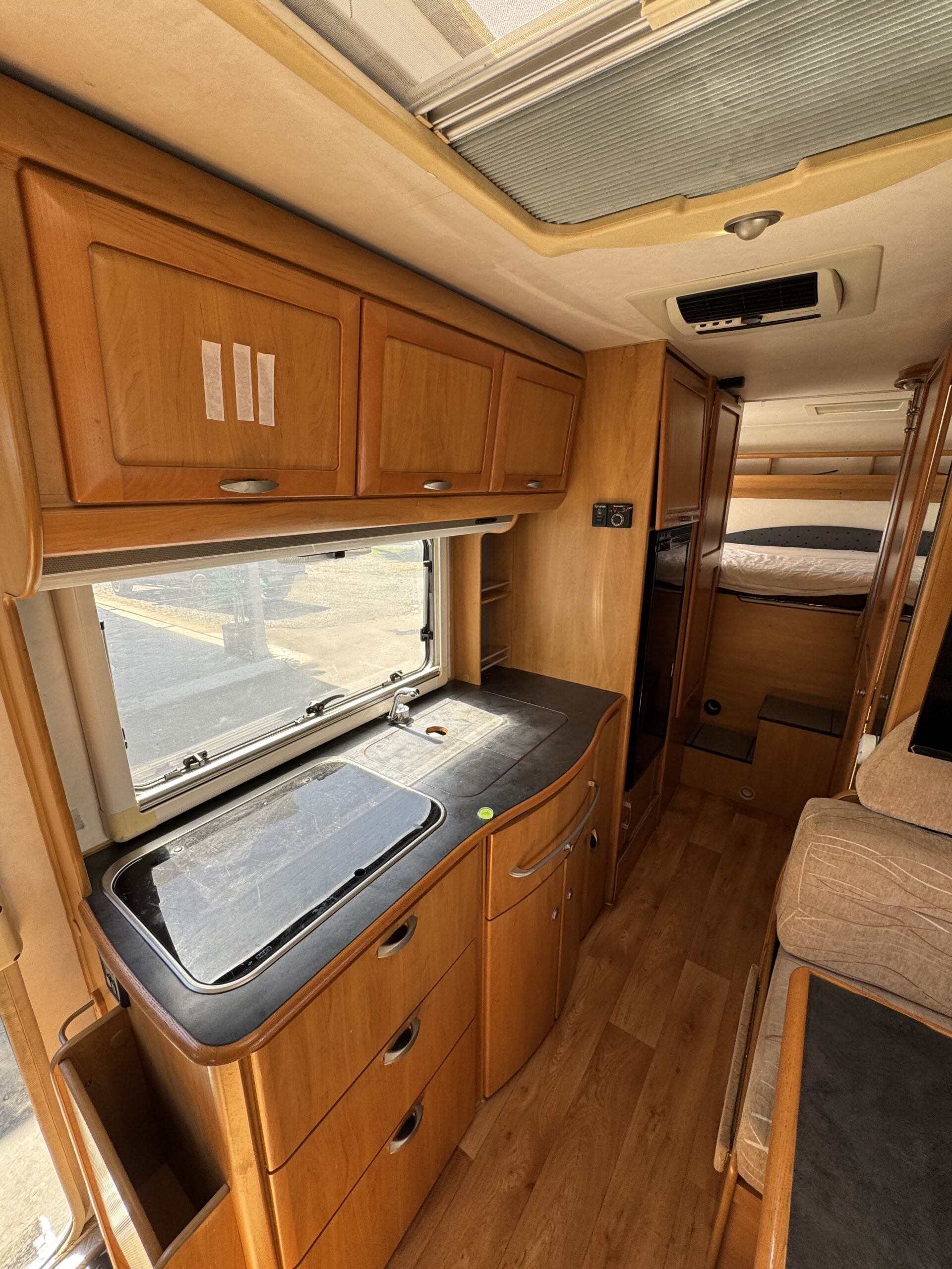 Equipamiento: aire acondicionado, calefacción, agua caliente, refrigerador y freezer, cocina a gas, amplio baño con ducha, lavamanos y wc, comedor cama, cama basculante sobre cabina y cama matrimonial, 2 baterías de gel 100Ah, paneles solares, inversor de corriente y toldo retráctil.