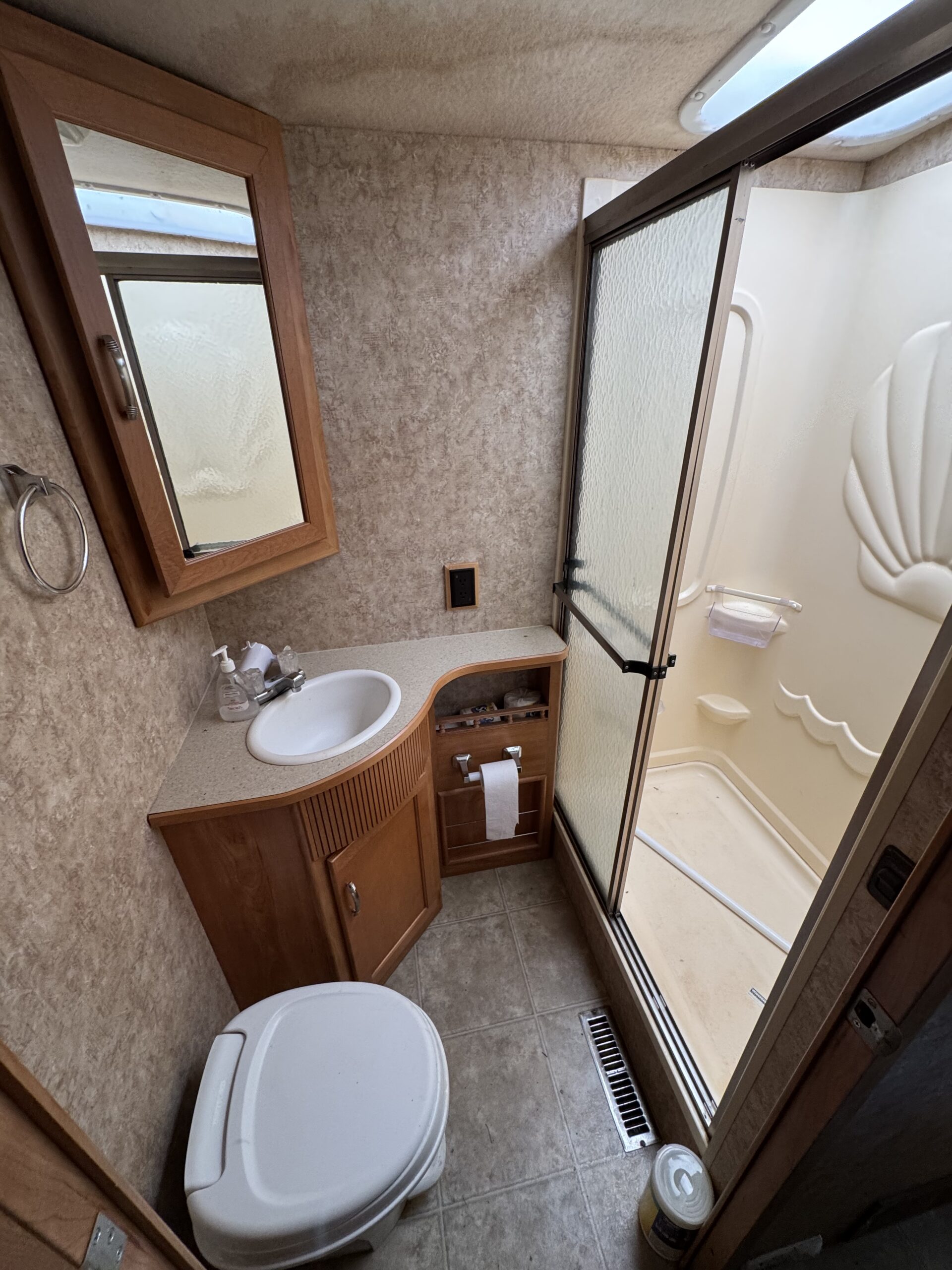 Motorhome americano 35 pies (10 metros), motor Vortec 8.1 litros a bencina, caja automática y capacidad de alojamiento de hasta 8 personas.