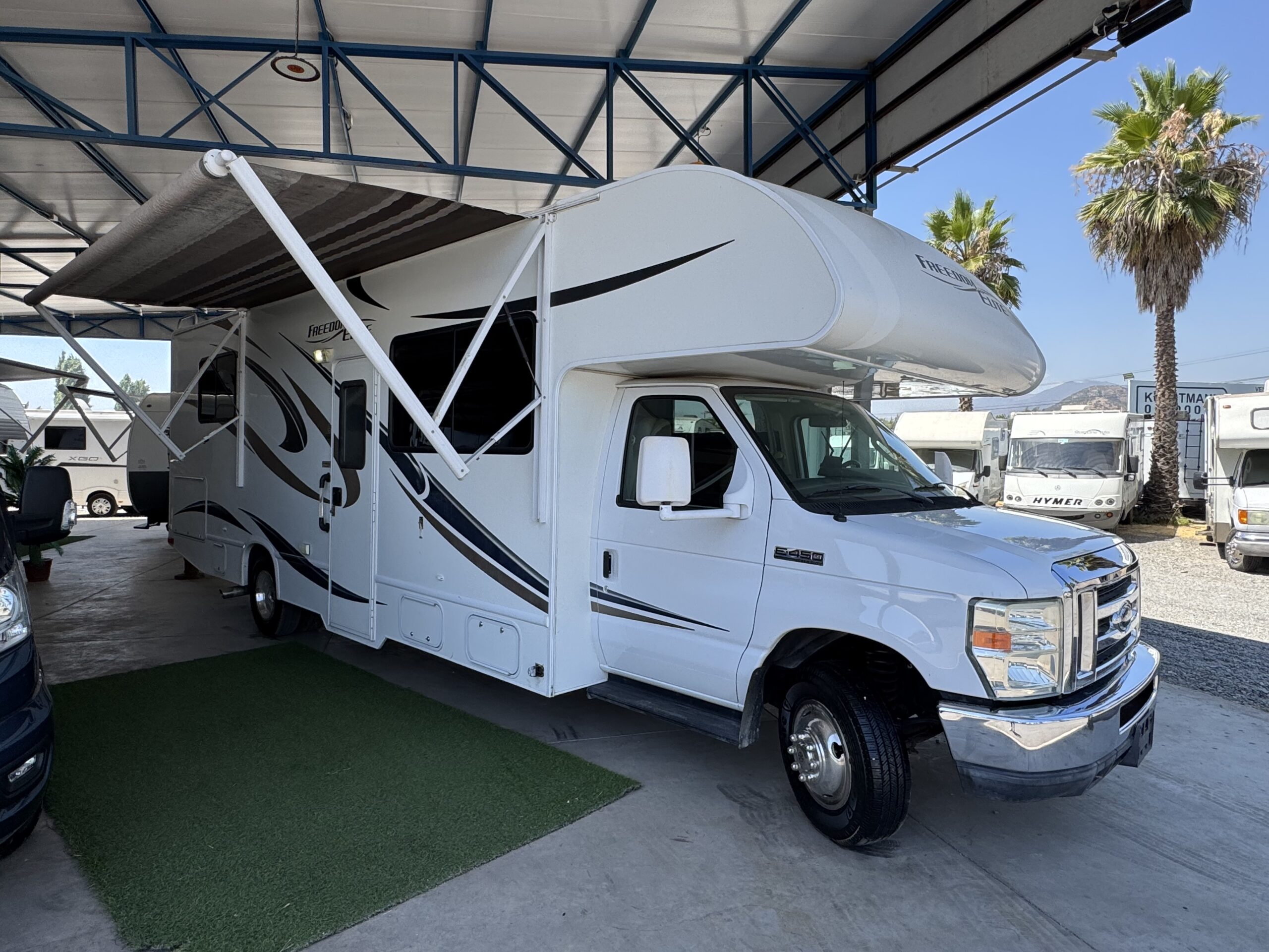 Motorhome Americano 28 pies (8,5 mts), motorizado por Ford V10 6.8 litros automático, caja automática, 65.000 kms (41.000 millas) y capacidad de alojamiento de hasta 5 personas.