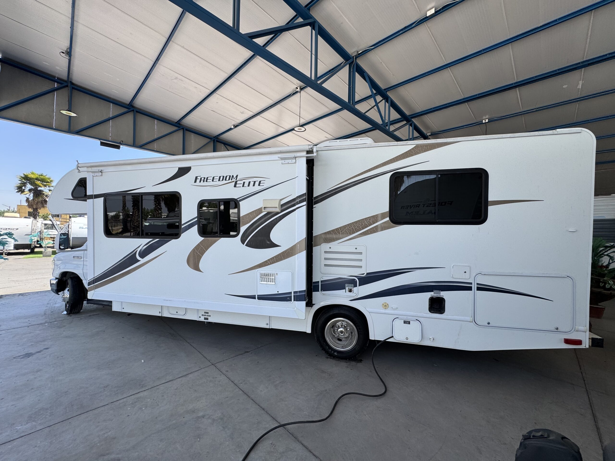 Equipamiento: Aire acondicionado, calefacción, agua caliente, cocina y horno a gas, microondas, refrigerador y freezer bivalente (eléctrico o gas), amplio baño con ducha, lavamanos y wc, dos bergeres, Slide out (ampliación lateral), Smart TV 40″, toldo retráctil eléctrico, generador de corriente 4000W, dos baterías de gel nuevas, dos paneles solares 170W, transformador de corriente.
