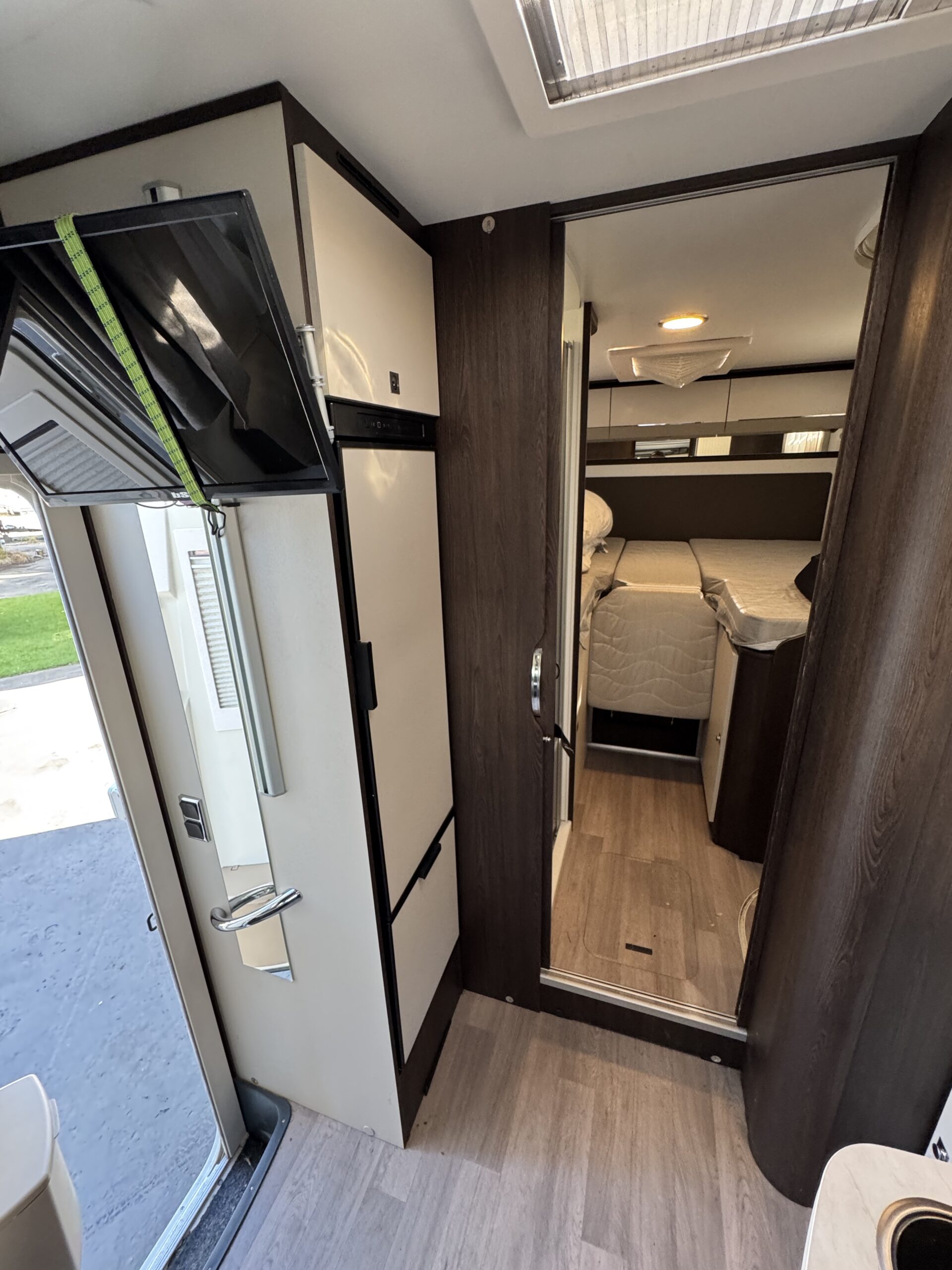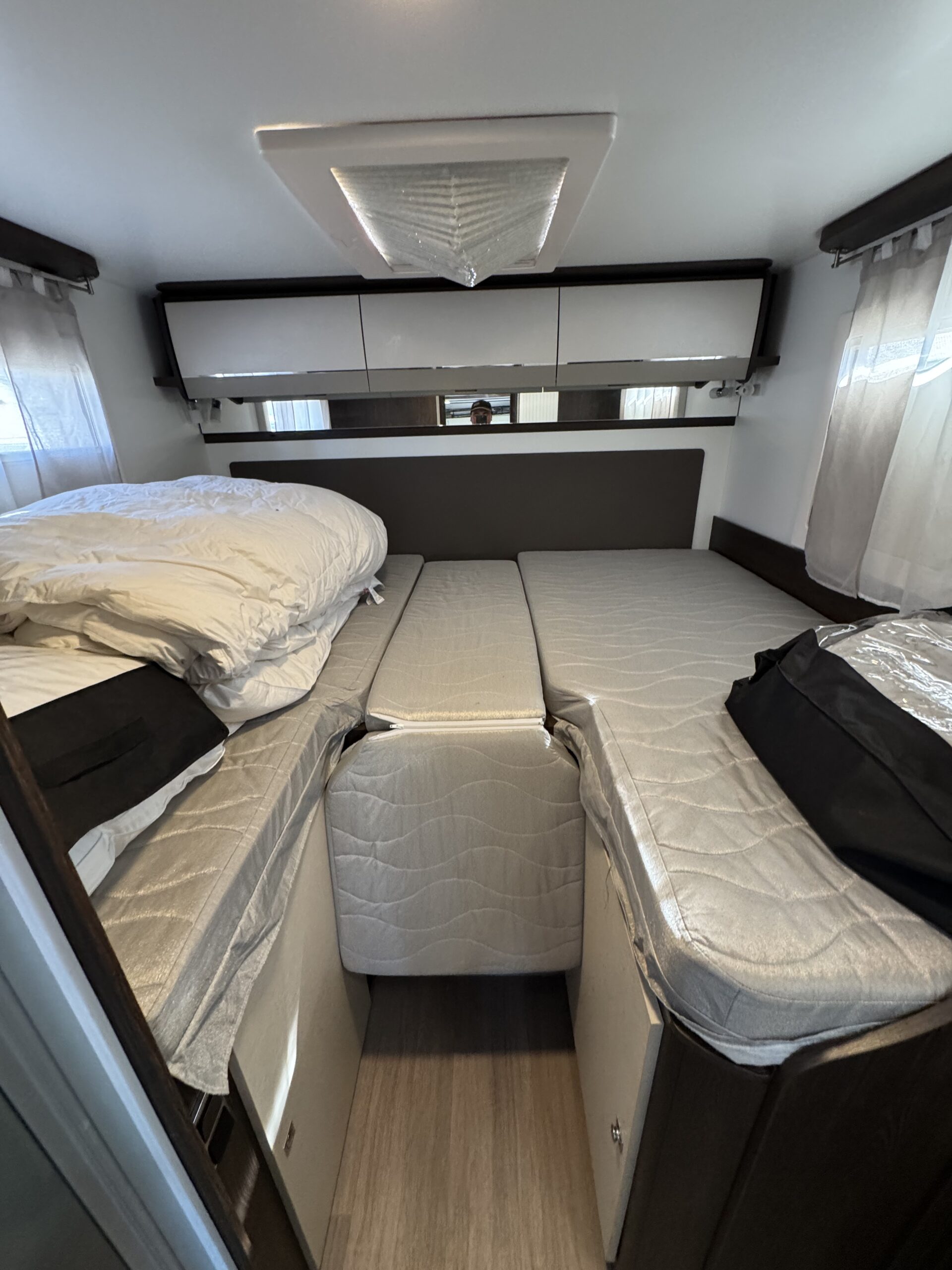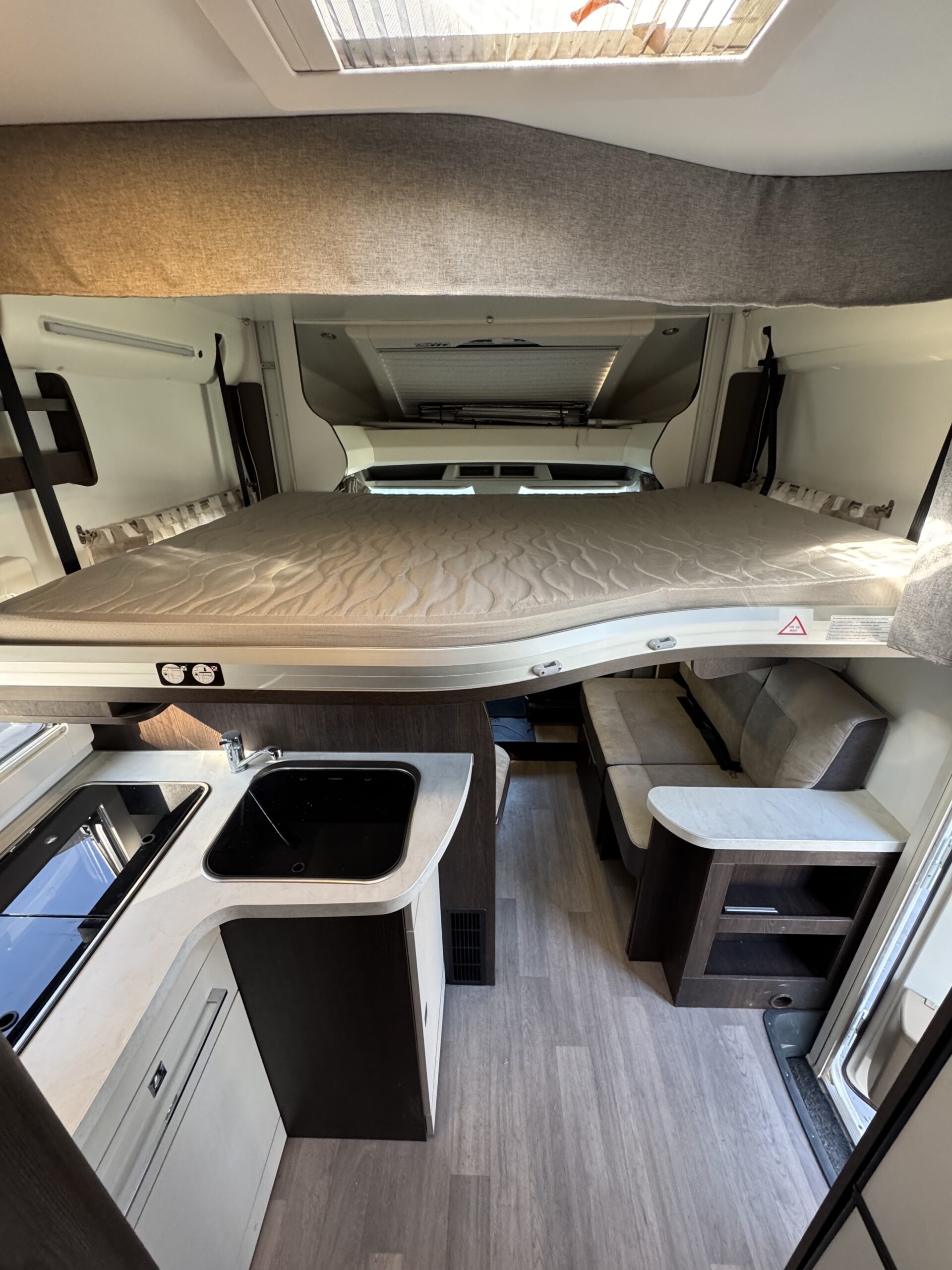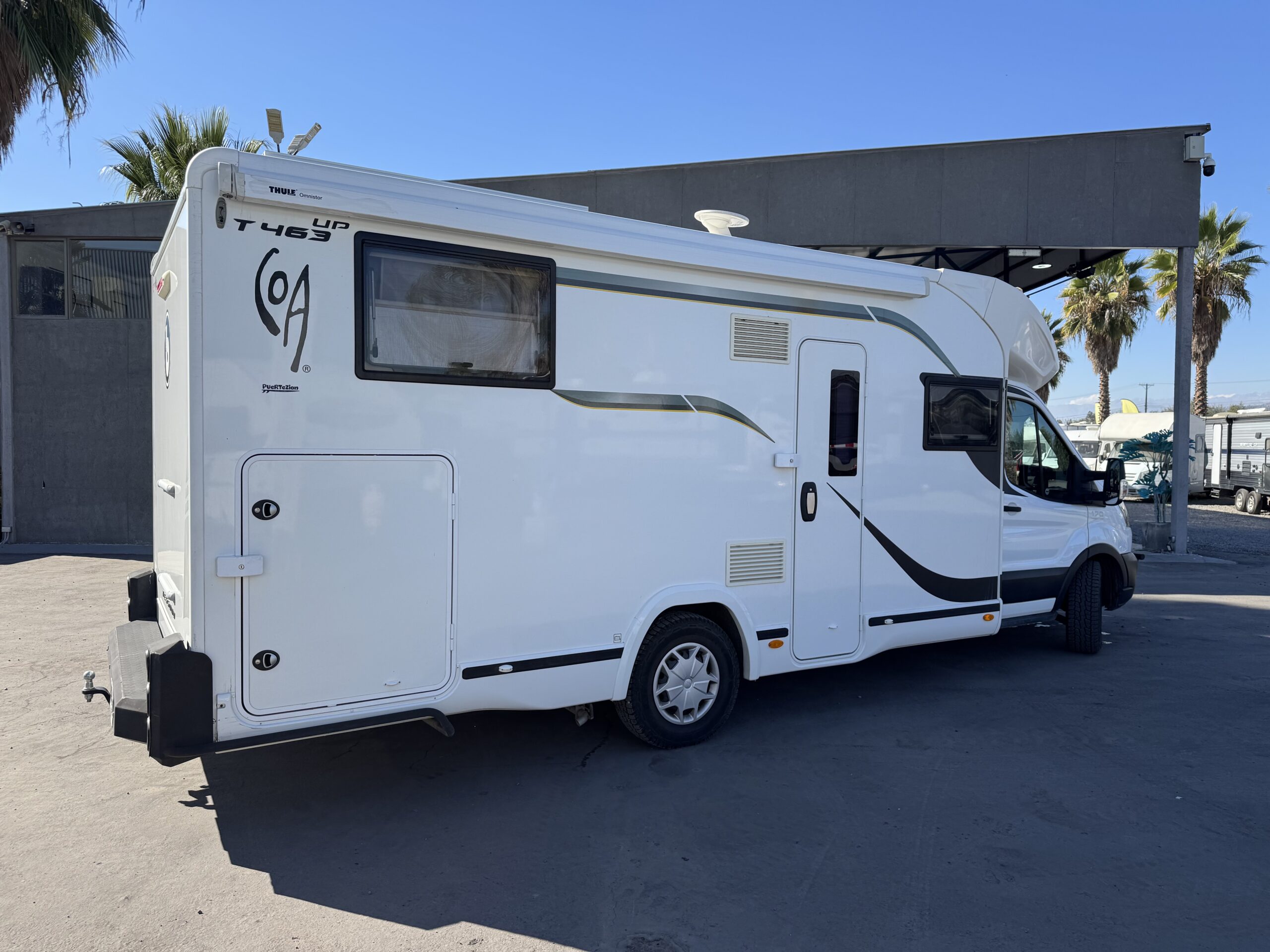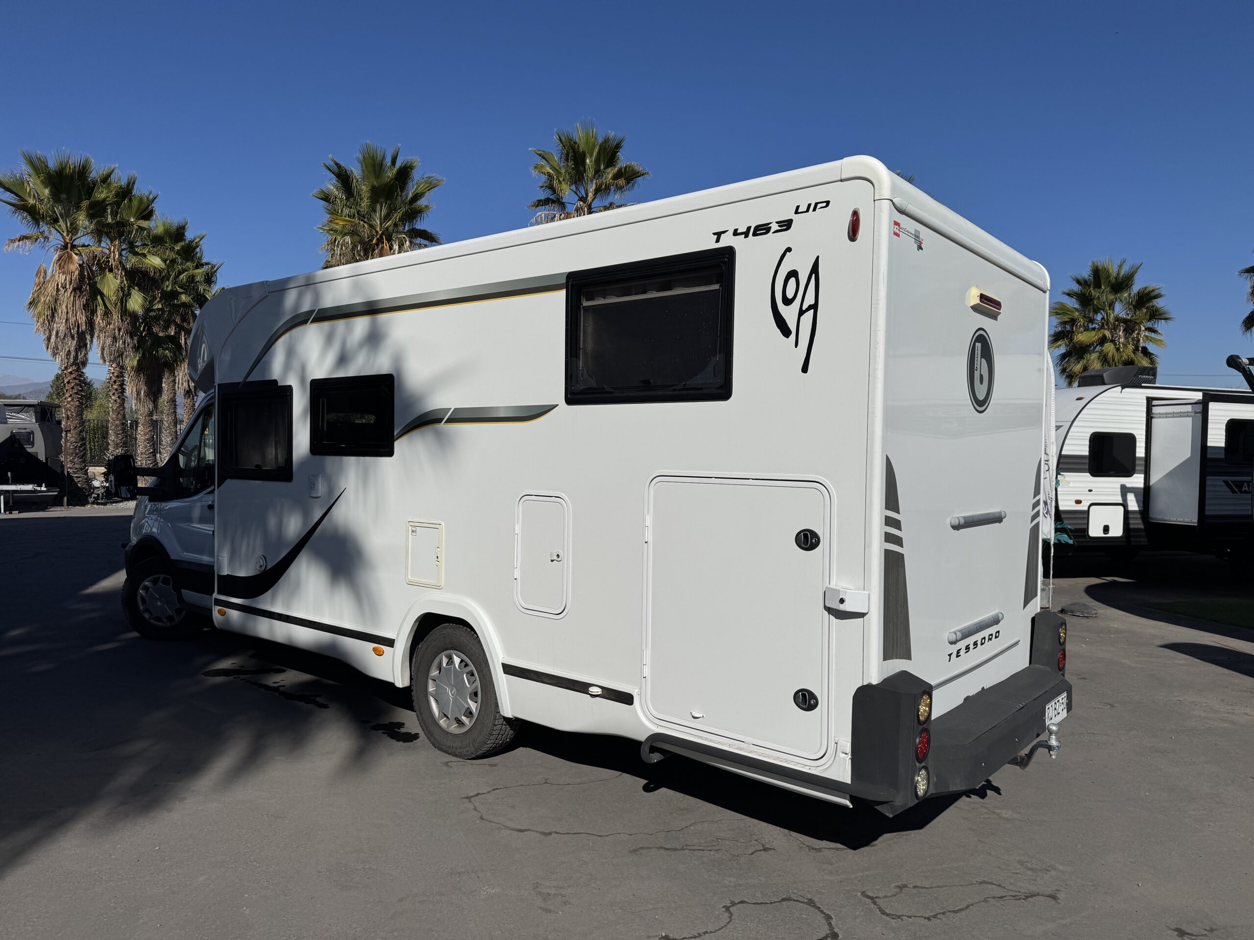 Equipamiento: Aire acondicionado, calefacción, agua caliente, refrigerador trivalente (220v, 12v o gas), cocina a gas, lavaplatos, baño con ducha independiente, cama basculante para 2 personas, comedor cama, toldo retráctil manual, amplia bodega, kit para carro de arrastre, kit de energía solar, estanque de agua potable: 110 litros, agua gris: 90 litros, agua negra: 18 litros.