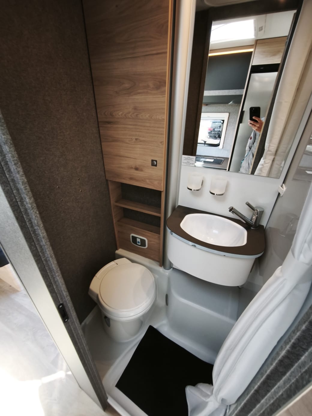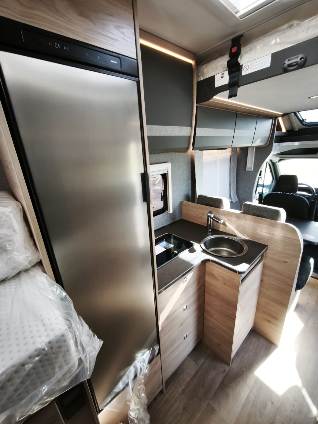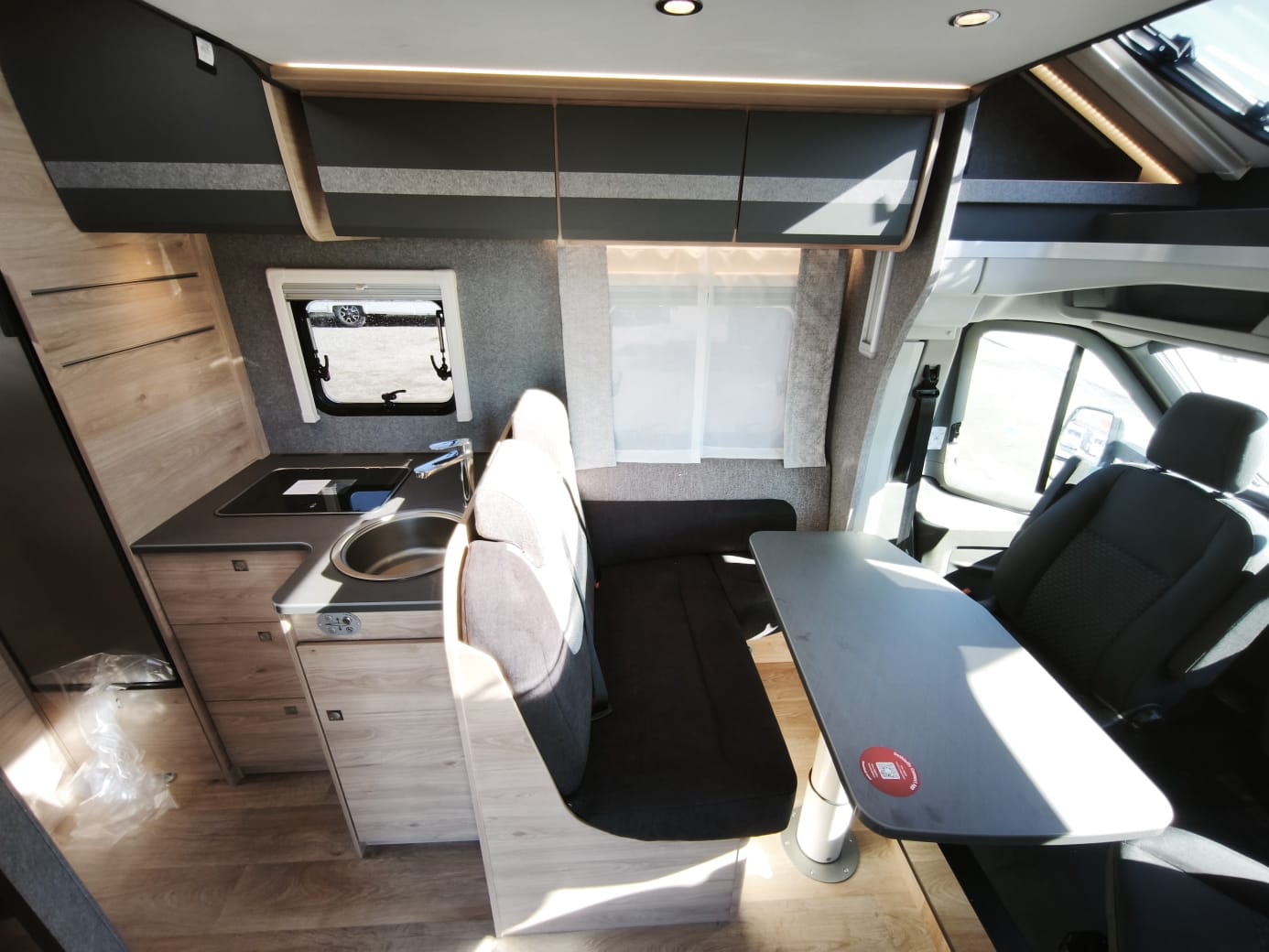 Equipamiento: Aire acondicionado, calefacción, agua caliente, refrigerador y freezer trivalente (220v, 12v o gas), cocina a gas, lavaplatos, baño con ducha, lavamanos y wc, cama basculante para 2 personas, comedor cama, pieza matrimonial con opción de separar en dos camas, amplia bodega, toldo retráctil manual, dos paneles solares 200W, batería de litio 200AH, inversor de corriente, estanque de agua potable: 115 litros y agua gris 95 litros.